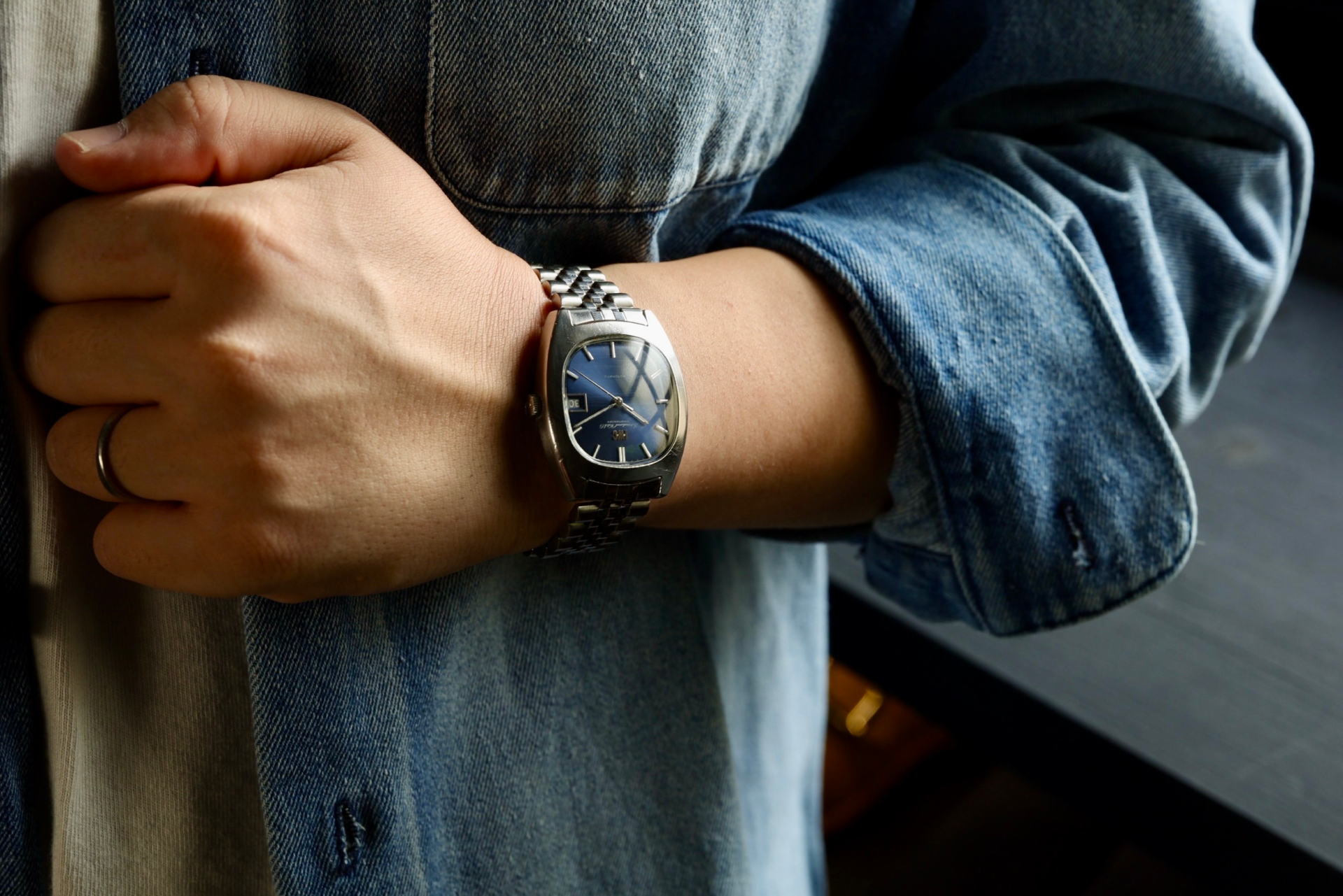 光の角度によって鮮やかなブルーから落ち着いたダークトーンまで表情を変え、腕元に洗練された彩りを加えます。