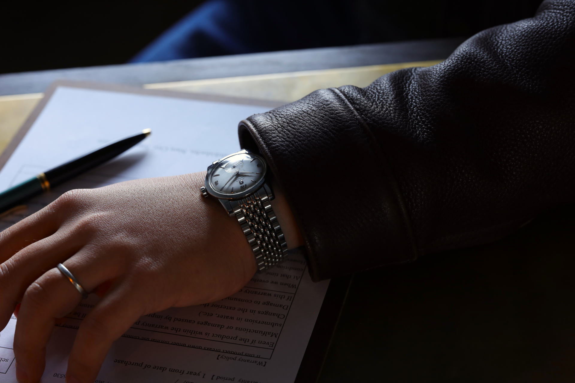 The balance between straight lines and curves is beautiful, and the watch exudes the honest and elegant appearance that is typical of Omega from the 1950s .