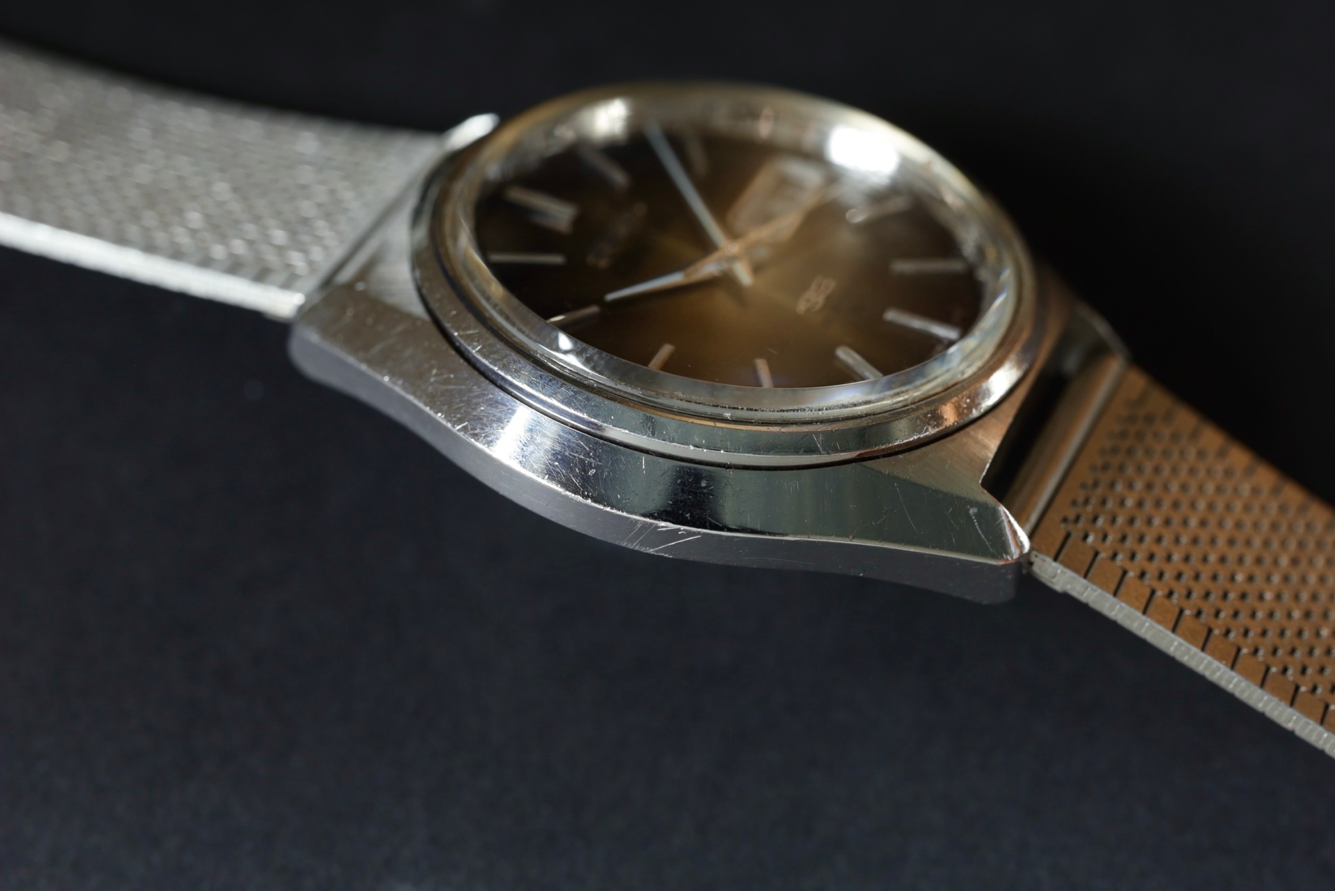 The watch is constructed with streamlined lines from the lugs to the bezel, giving it a natural fit on the wrist and a subdued presence that is unique to vintage watches.
