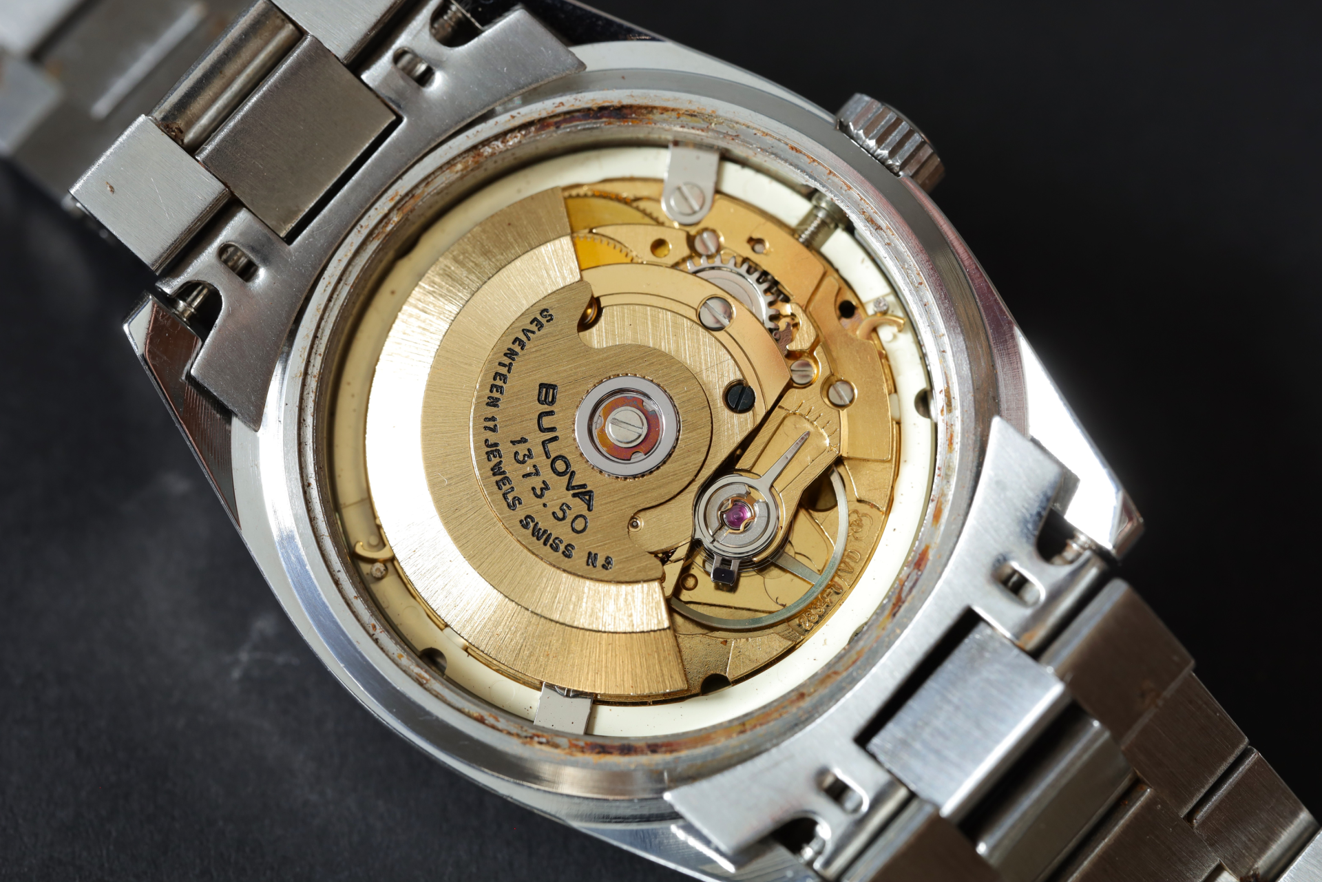 華やかなケースデザインに目が向きがちなモデルですが、実用時計としてのバランスまできちんと考えられているところに、当時のブローバらしさが感じられます。