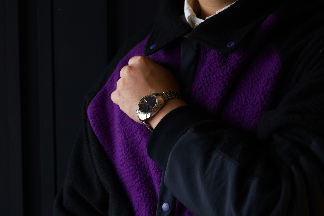 ブラックの文字盤は、オレンジとブルーのカラーをより鮮明に引き立たせるので、よりポップなデザインさを印象付けます。