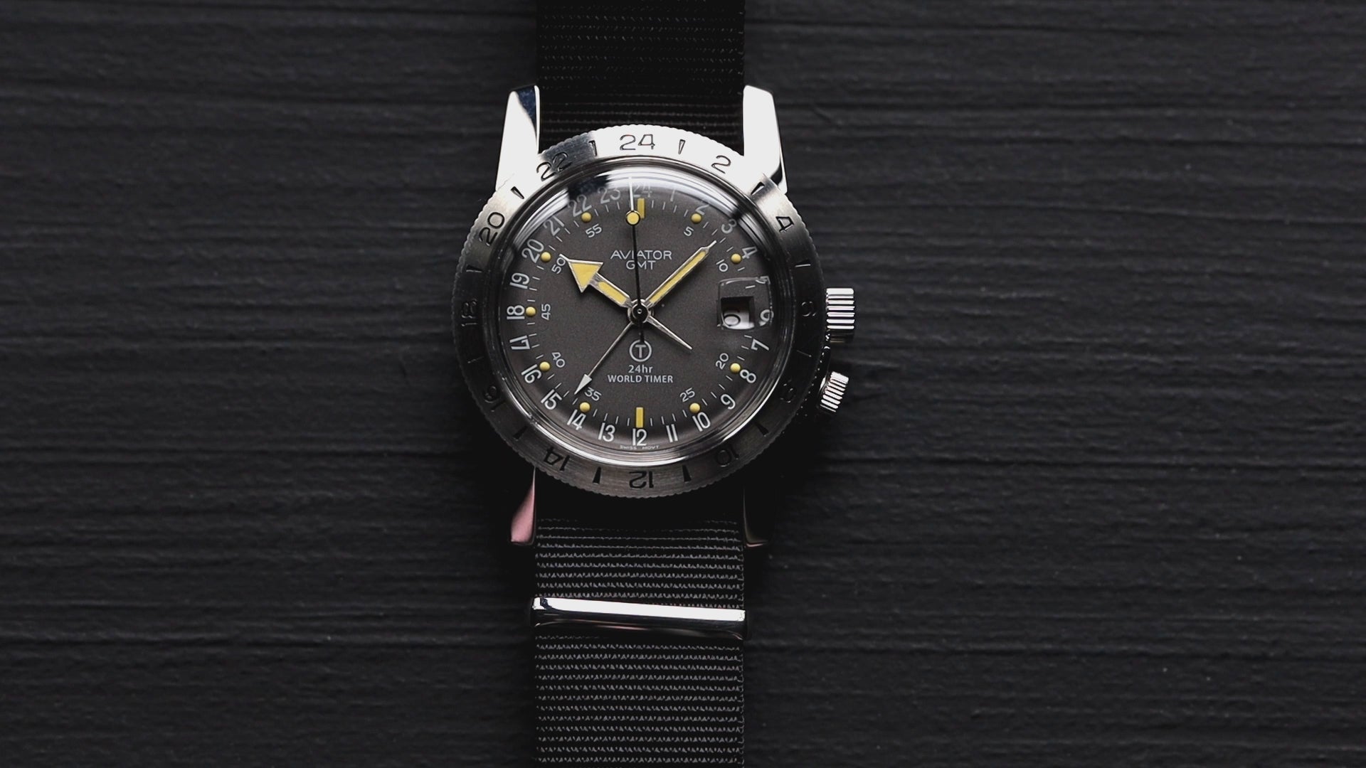 文字盤は、日にやけたブラックダイヤルを再現したグレーダイヤル。