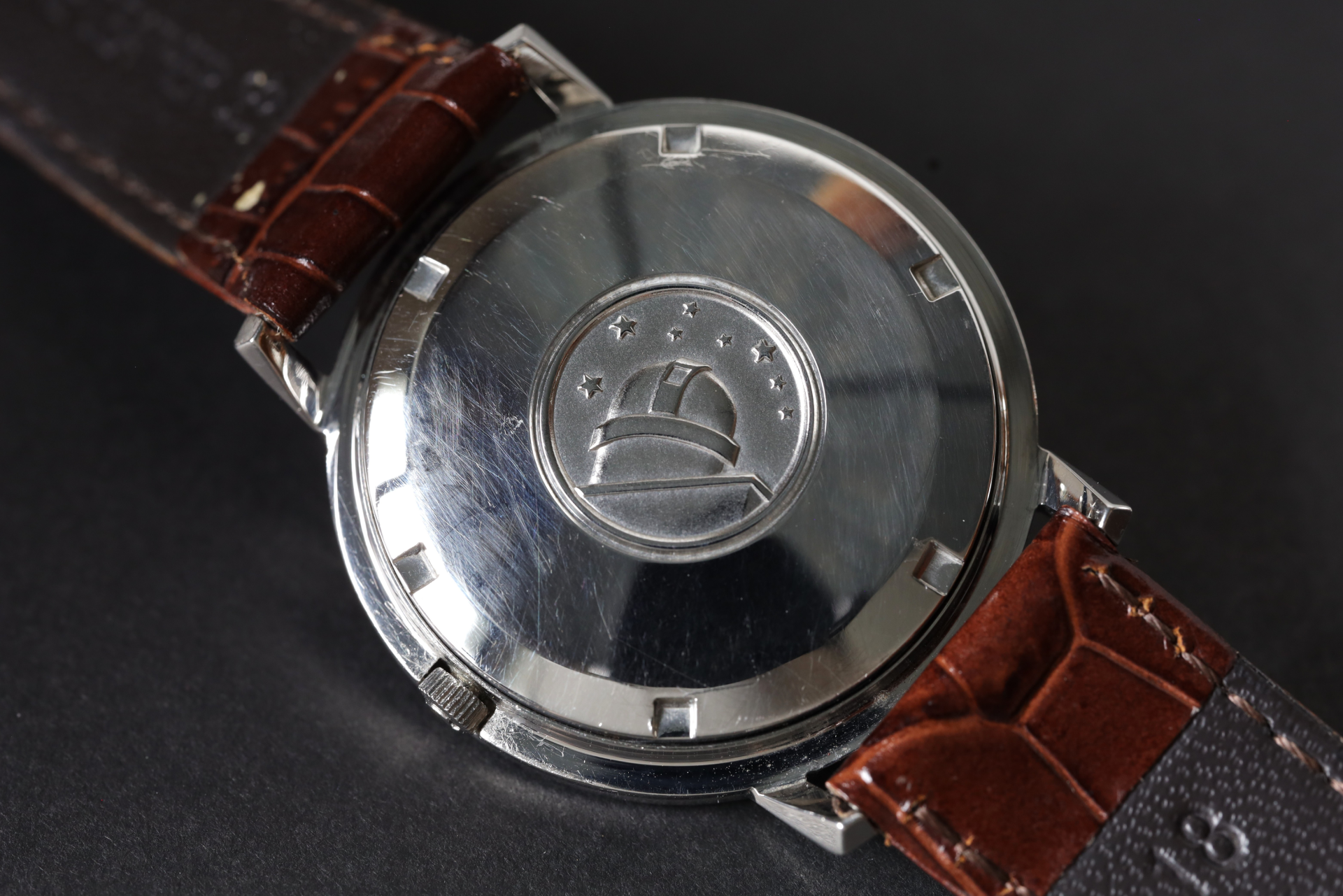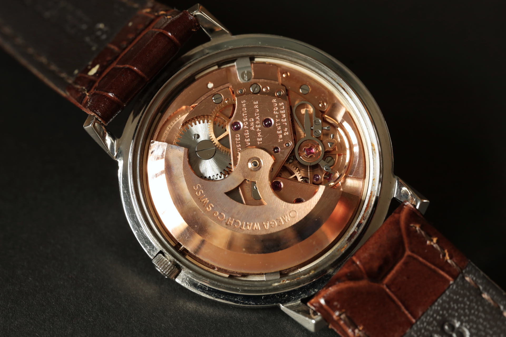 裏蓋には天文台のメダリオンが刻まれ、オメガが追求した精度への誇りを象徴しています。