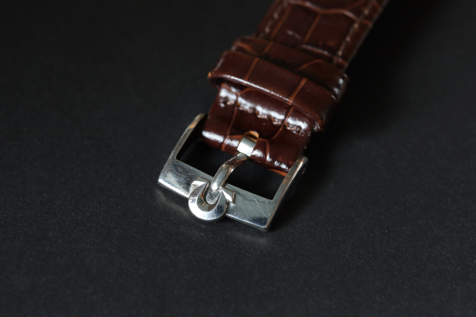 レザーベルトは社外品ですが、尾錠はオメガ純正尾錠を装着。