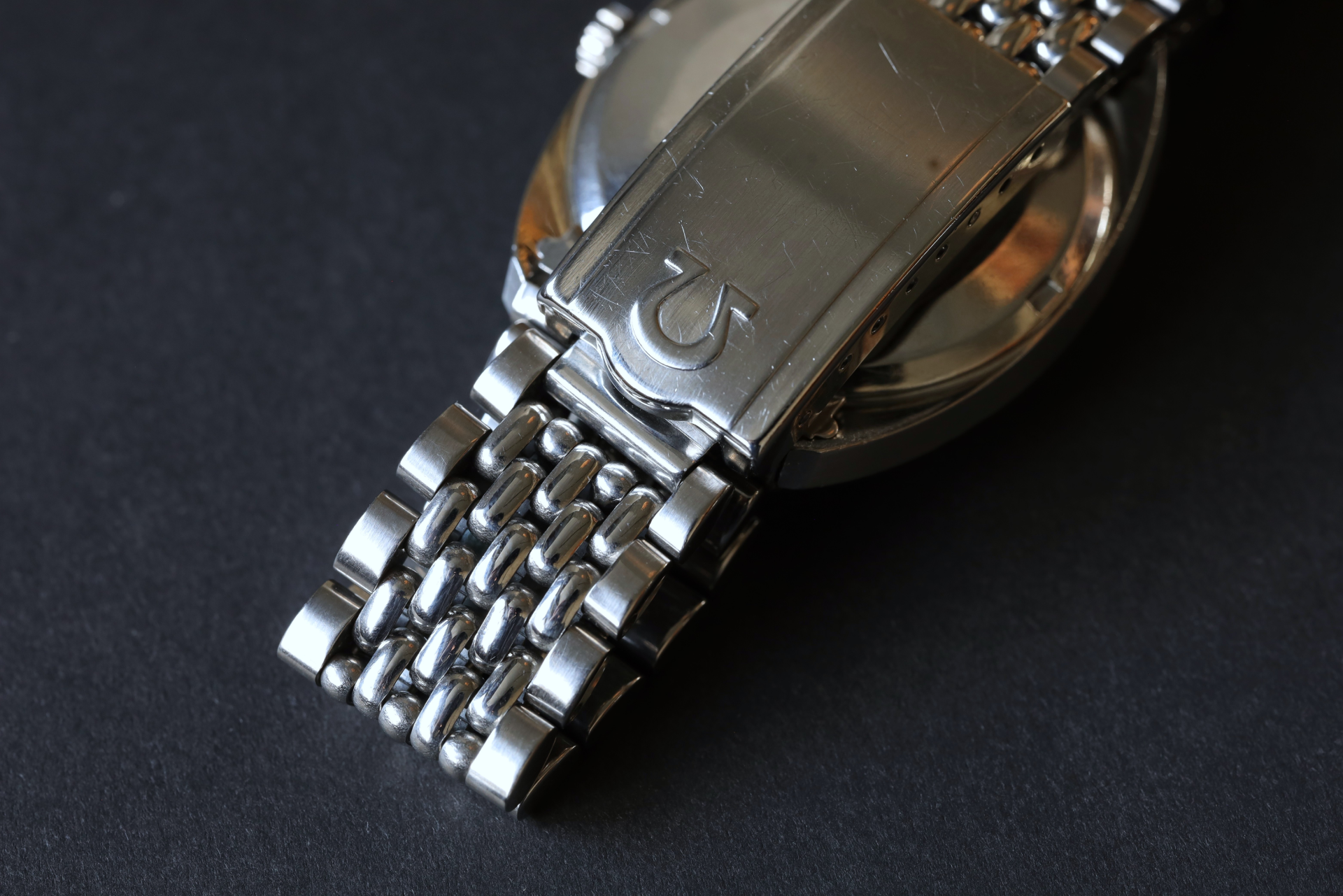 オメガ純正のライスブレスを装着しています。