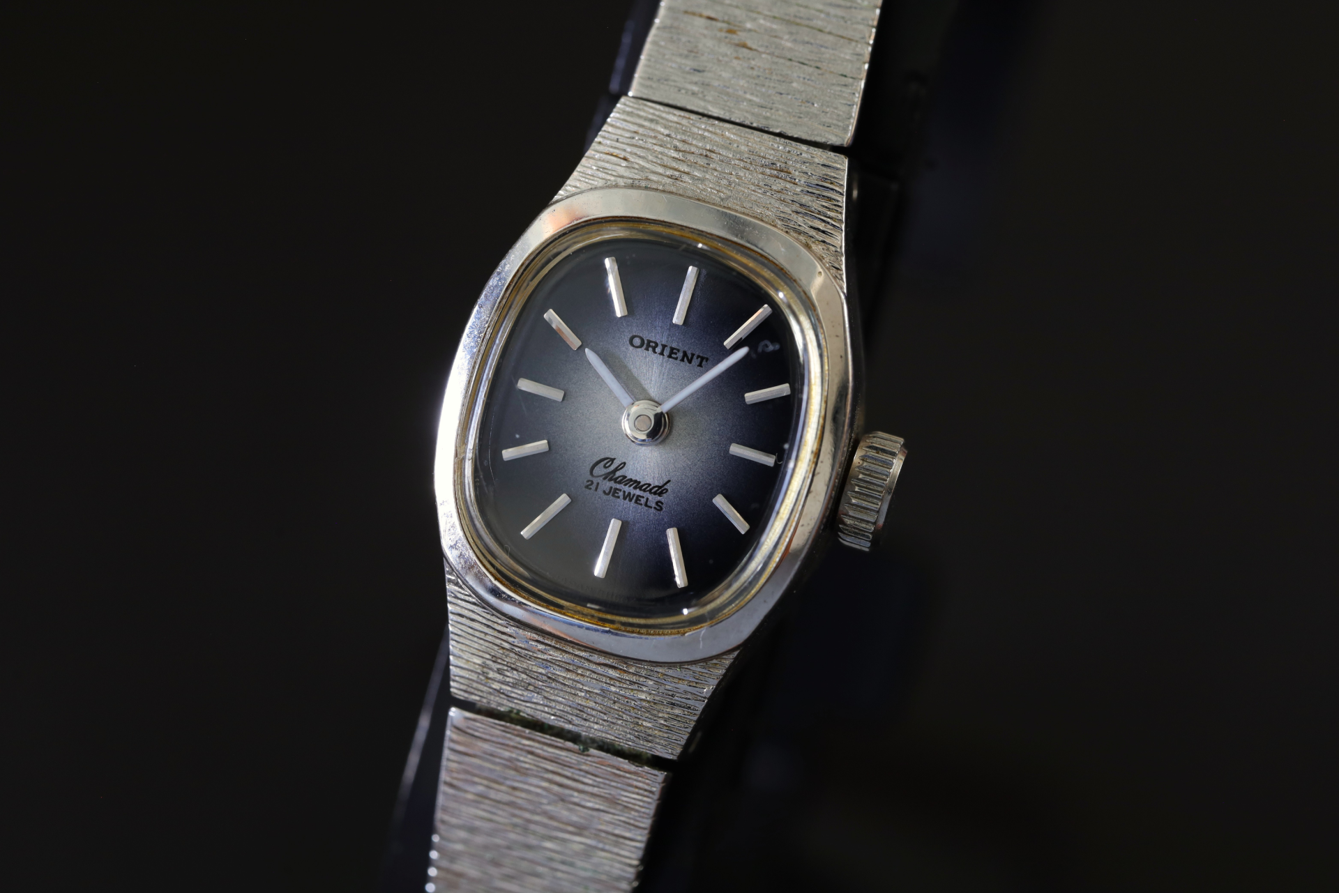 こうした戦略の中で、オリエントの自社製ムーブメントは高い評価を受ける一方、デザイン面でも革新を続けました。特に、世界で初めてレディース向けの角型時計を発表したことは、他の時計メーカーにも影響を与え、角型時計の流行を生み出す契機となります。
