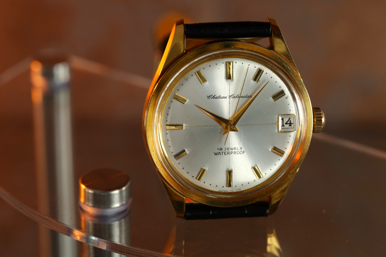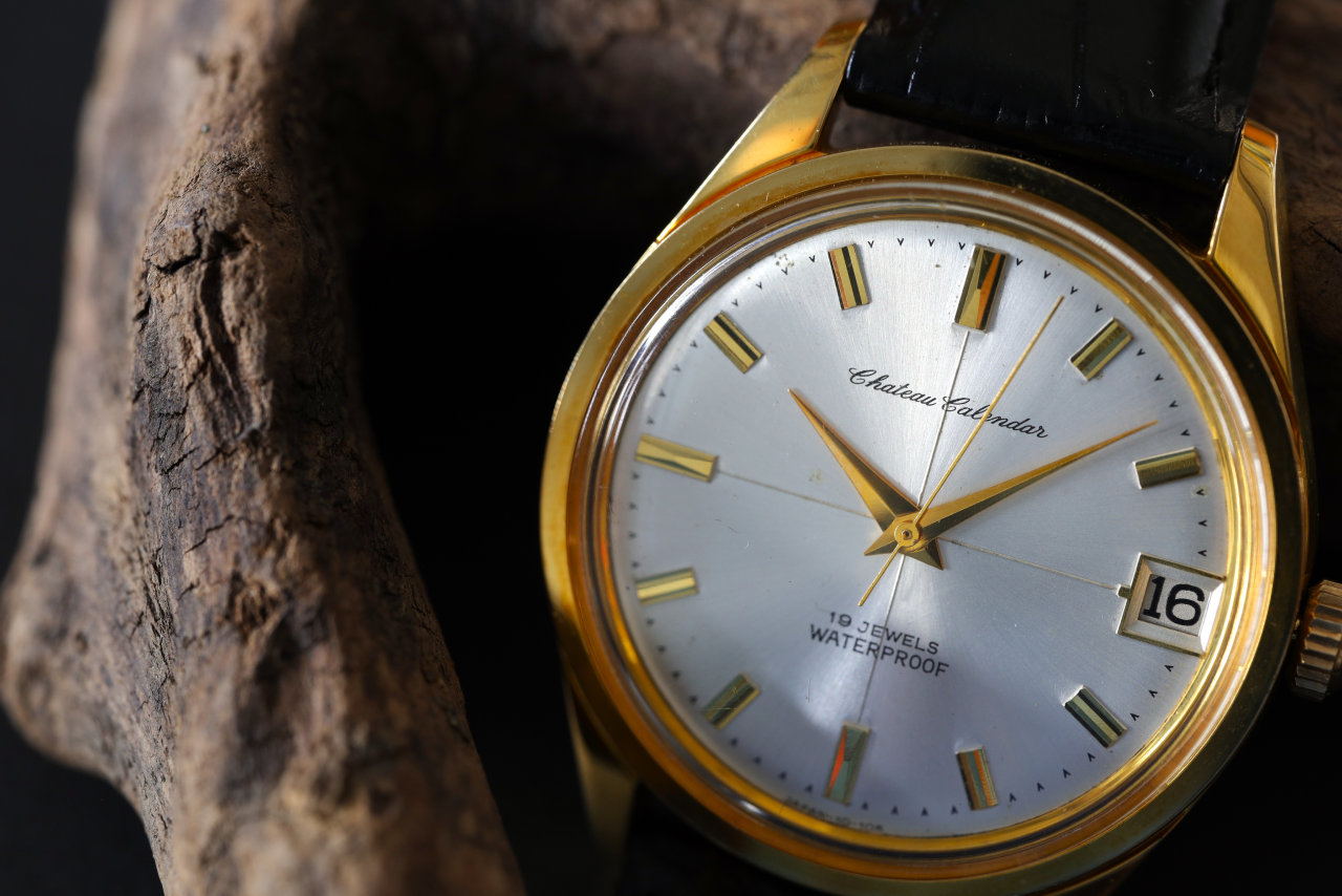 1959年に発表された「シャトー」は当時、世界一の薄型腕時計として一世を風靡した時計で、タカノを代表するモデルです。