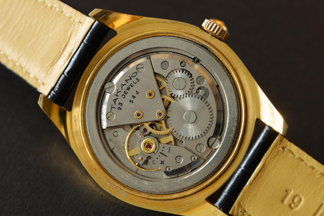 リコーに移行する過渡期に生産されていたので、ムーブメントにはタカノ刻印が入った、当時の歴史を感じる希少な1本です。