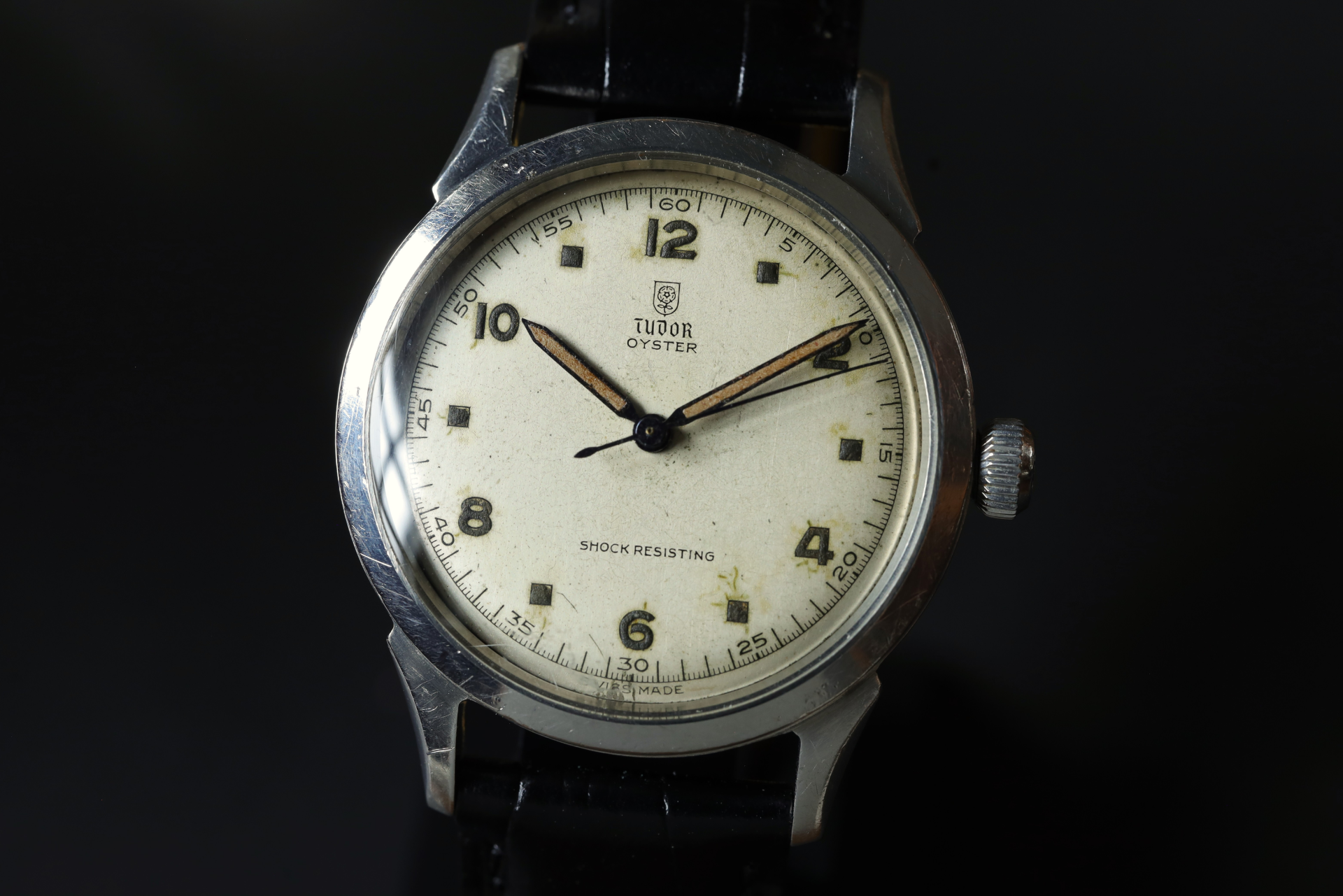リューズには「OYSTER PATENT」の刻印が刻まれ、当時の製造背景を今に伝える貴重なディティールです。